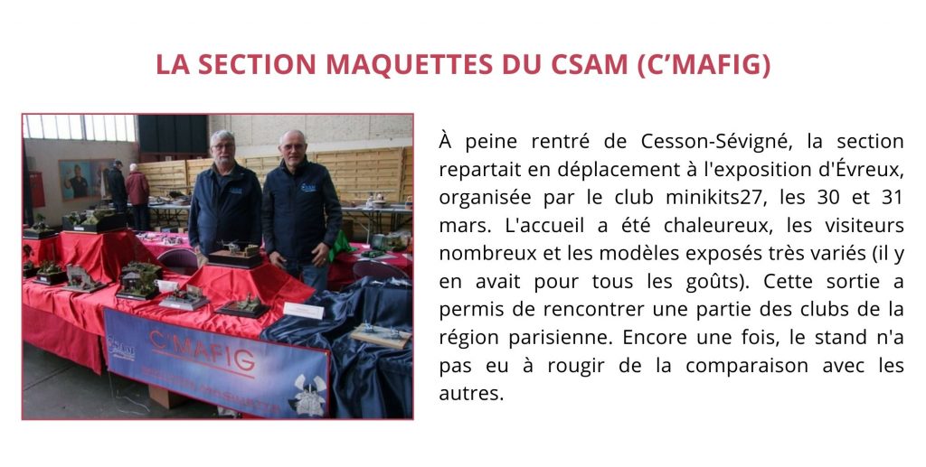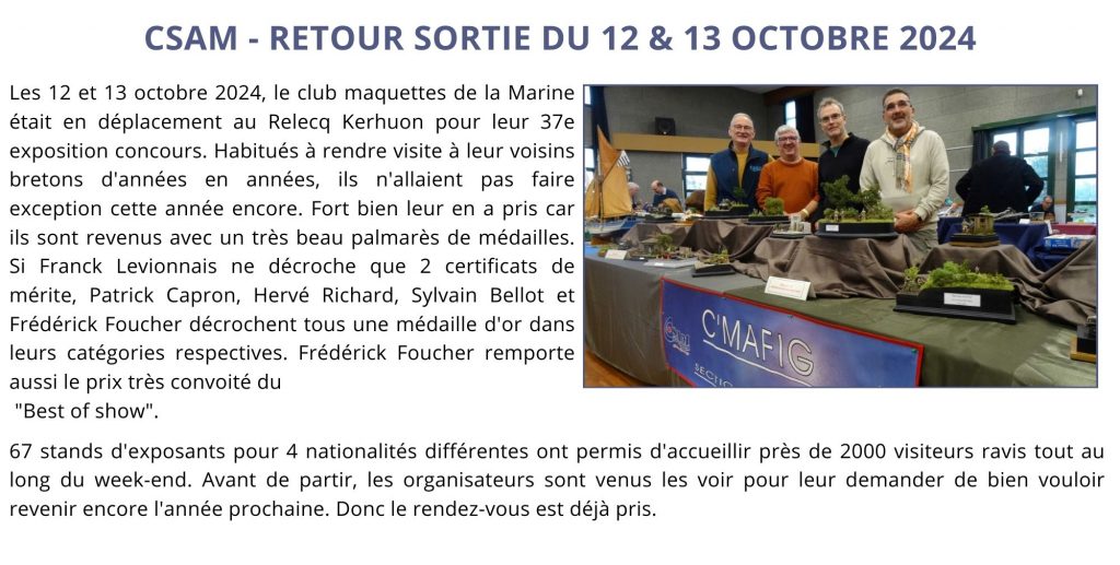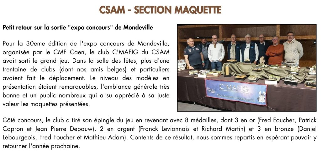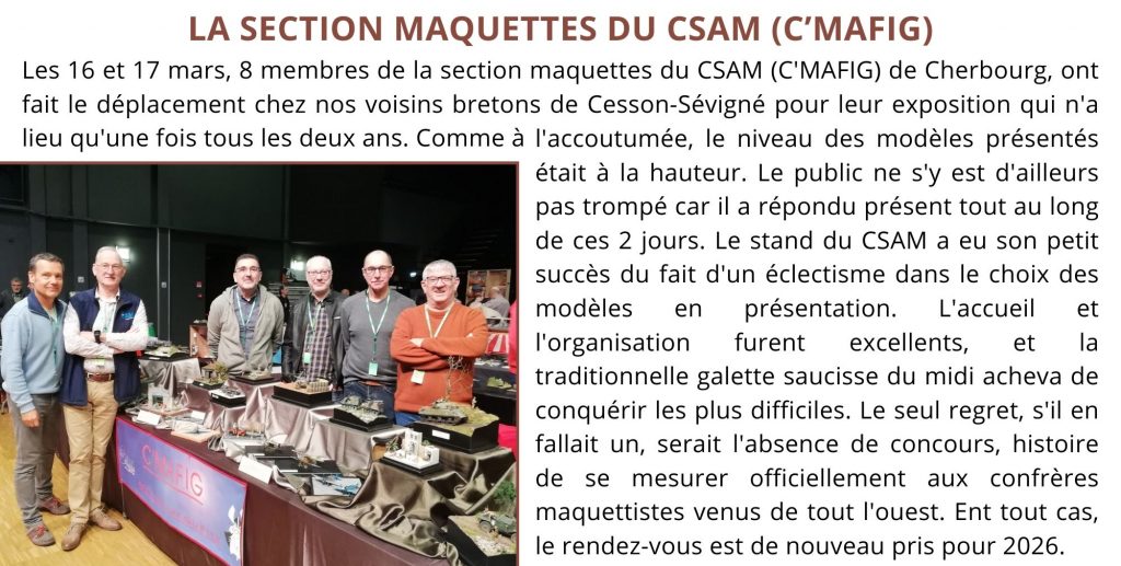 Jeudi 30 mai, à la salle Tourville du Cercle de la Base de Défense de Cherbourg, s'est tenu l'exposition de fin de saison de la section Bicoque et maquette du CSAM de Cherbourg.