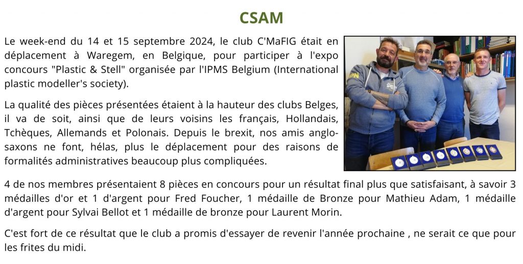Ses adhérents ont présenté une partie de leurs travaux de la saison écoulée. Une douzaine d'oeuvres "tournées vers la seconde guerre mondiale" de la section Maquette et quelques 77 oeuvres, de divers domaines de loisirs créatifs.